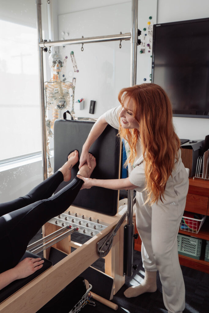 A Mix of Hands on Therapies and Independent Movement – With a pilates reformer that transforms into a treatment table, sessions can start with hands-on assessment and treatment to check in, relieve tension, or refine movement patterns before seemlessly transitioning into Pilates-based exercise therapy.